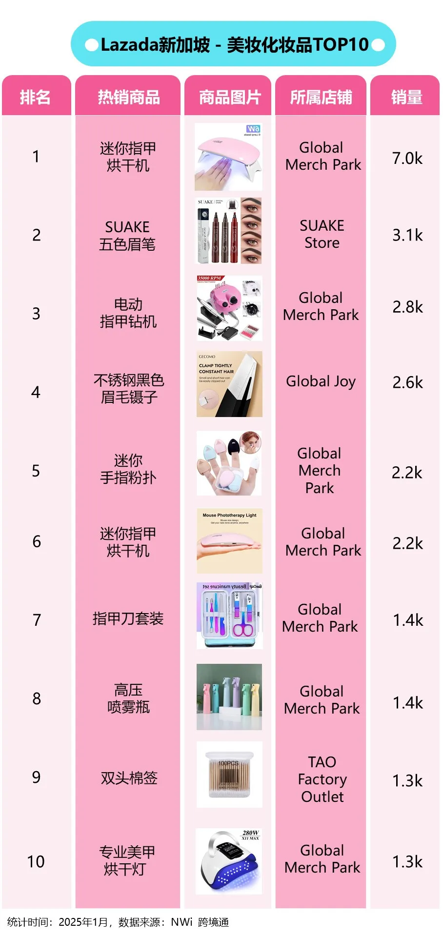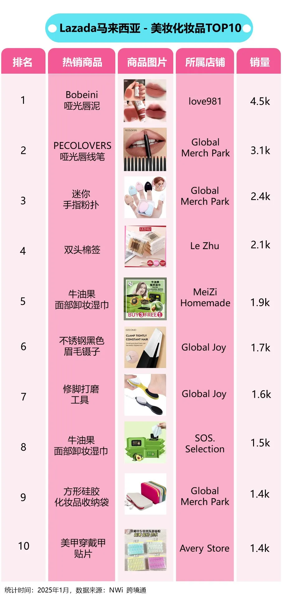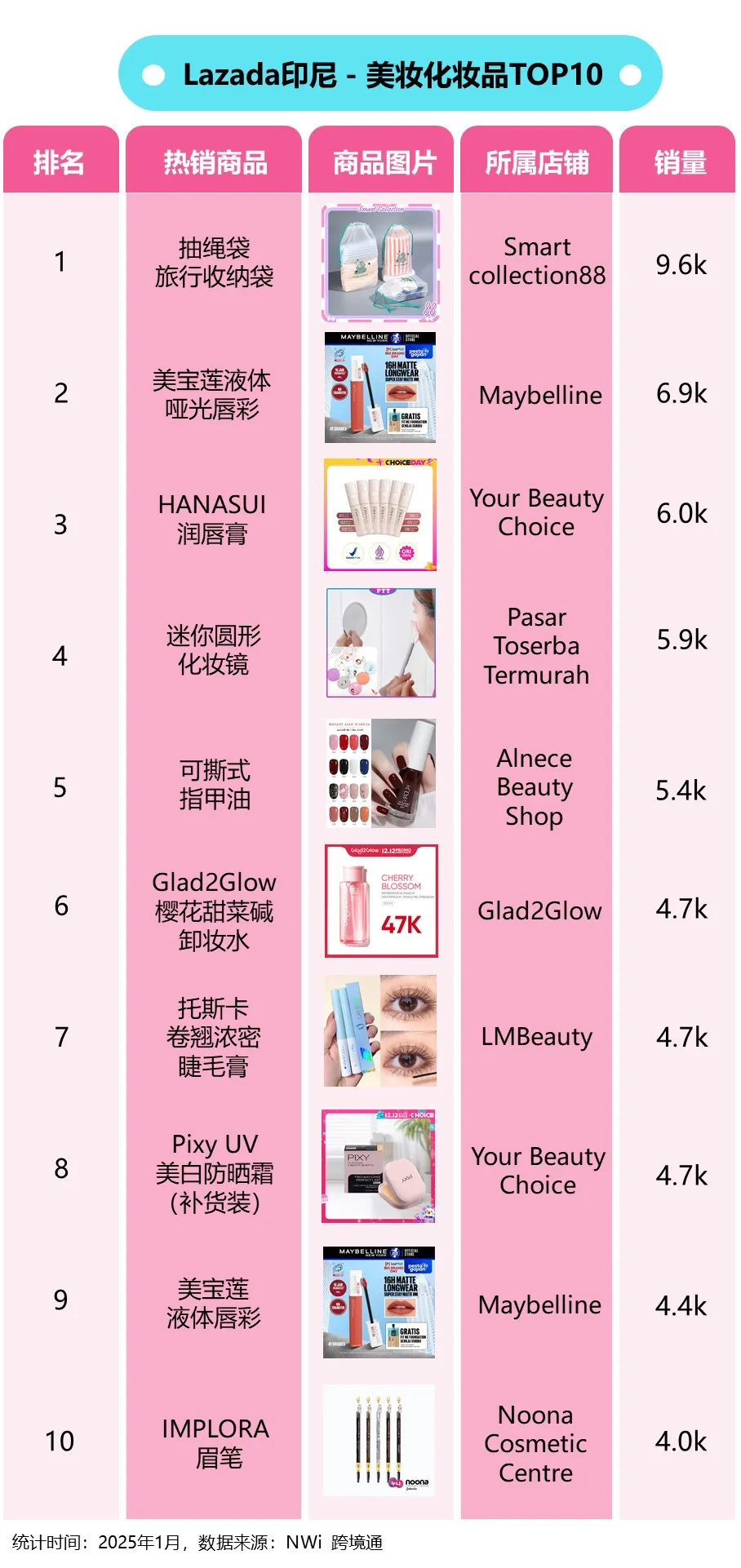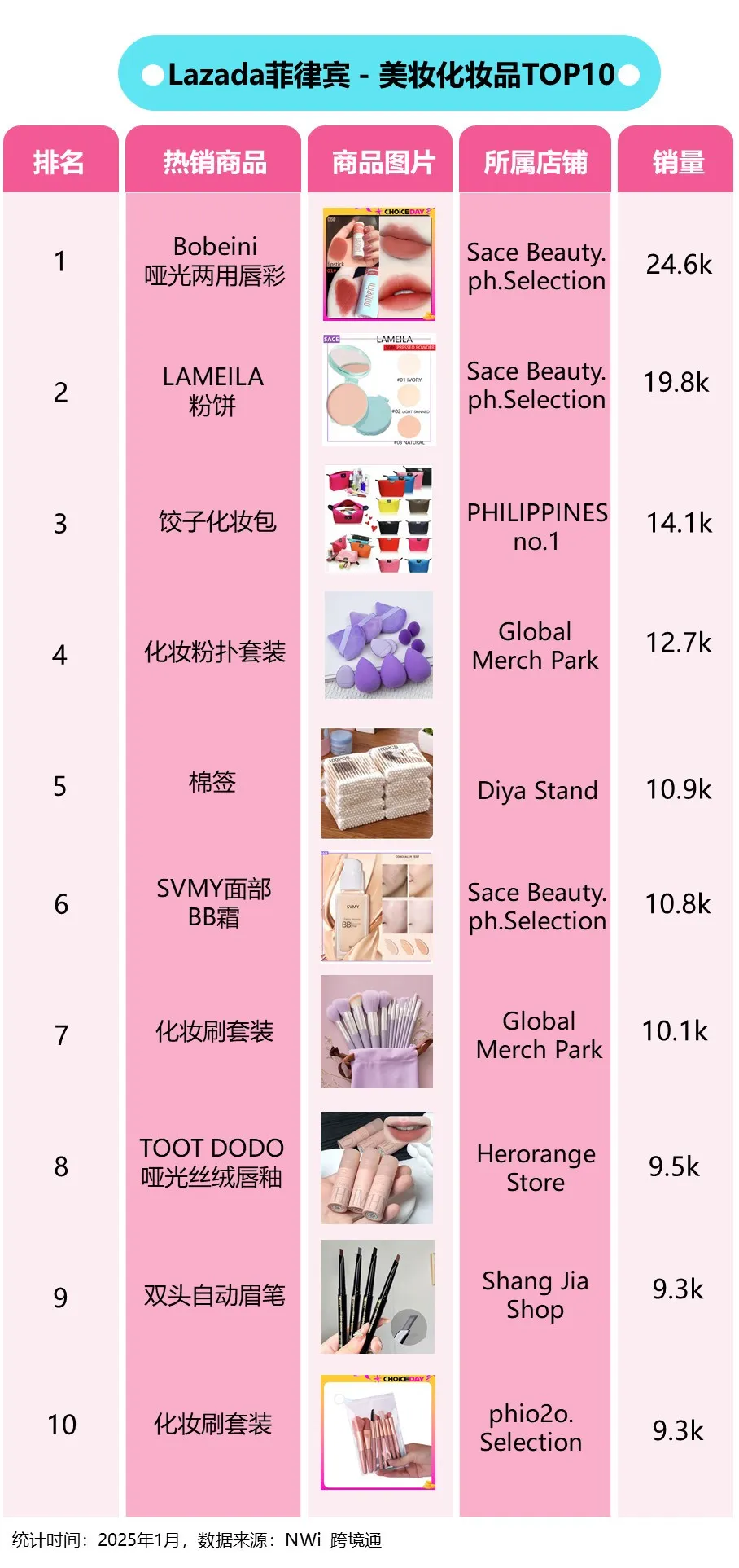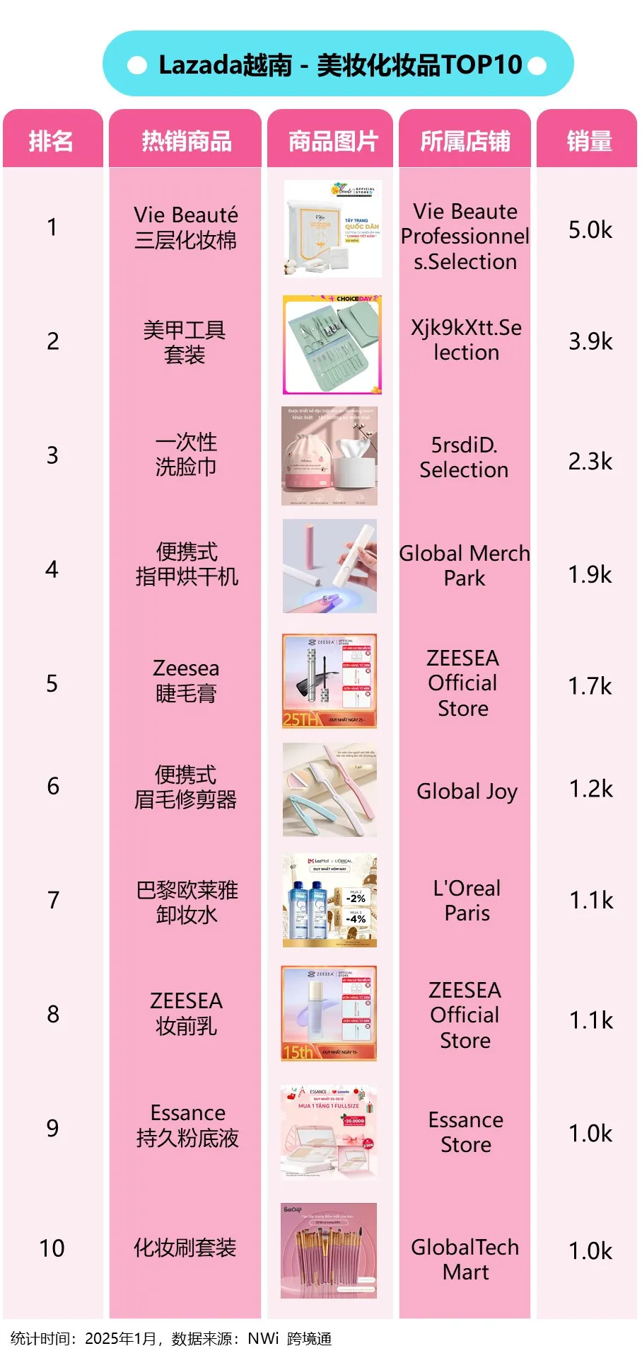 2025年1月,Lazada东南亚化妆品市场商品热销榜单速递!