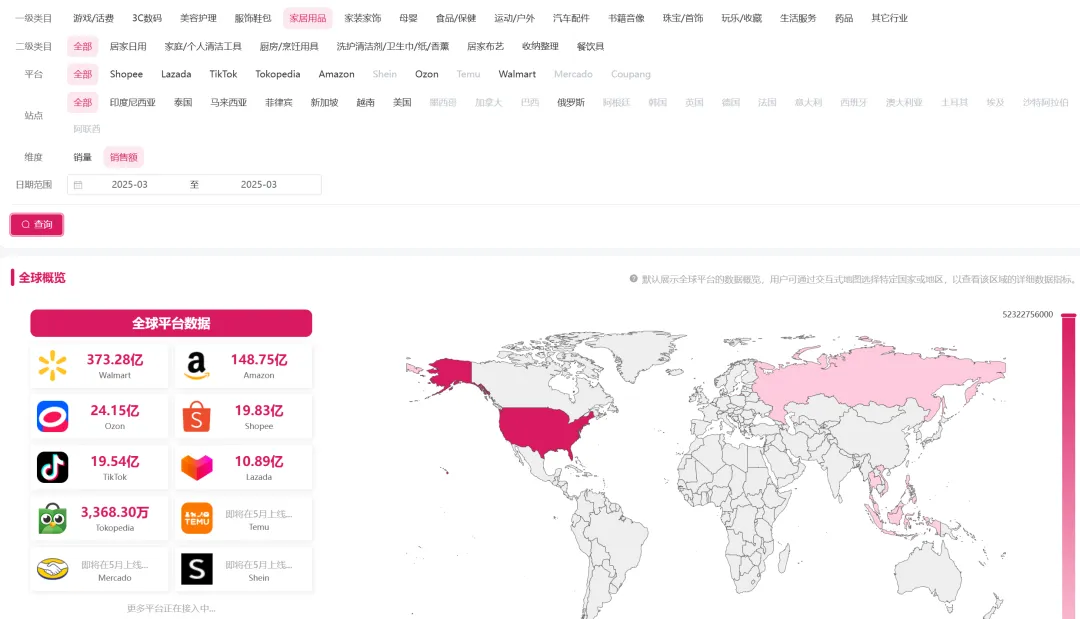 数据来源:诺舟数智-跨境通全球概览-25年3月家居用品类目销售额