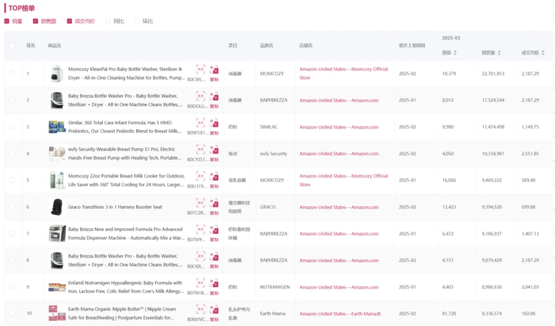数据来源:诺舟数智-跨境通全球概览-25年3月母婴产品类目销售额