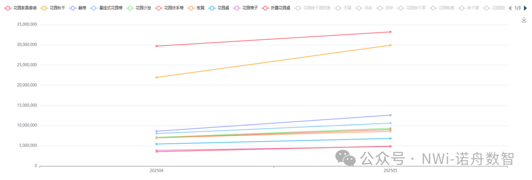 根据五月份销售数据——花园家具套装TOP商品:秋千/躺椅/花园家具套装